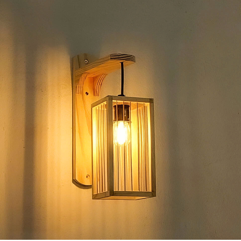Kích thước ốp gỗ: Cao: 30 cm, Tay đèn: 19 cm, Rộng: 6 cm